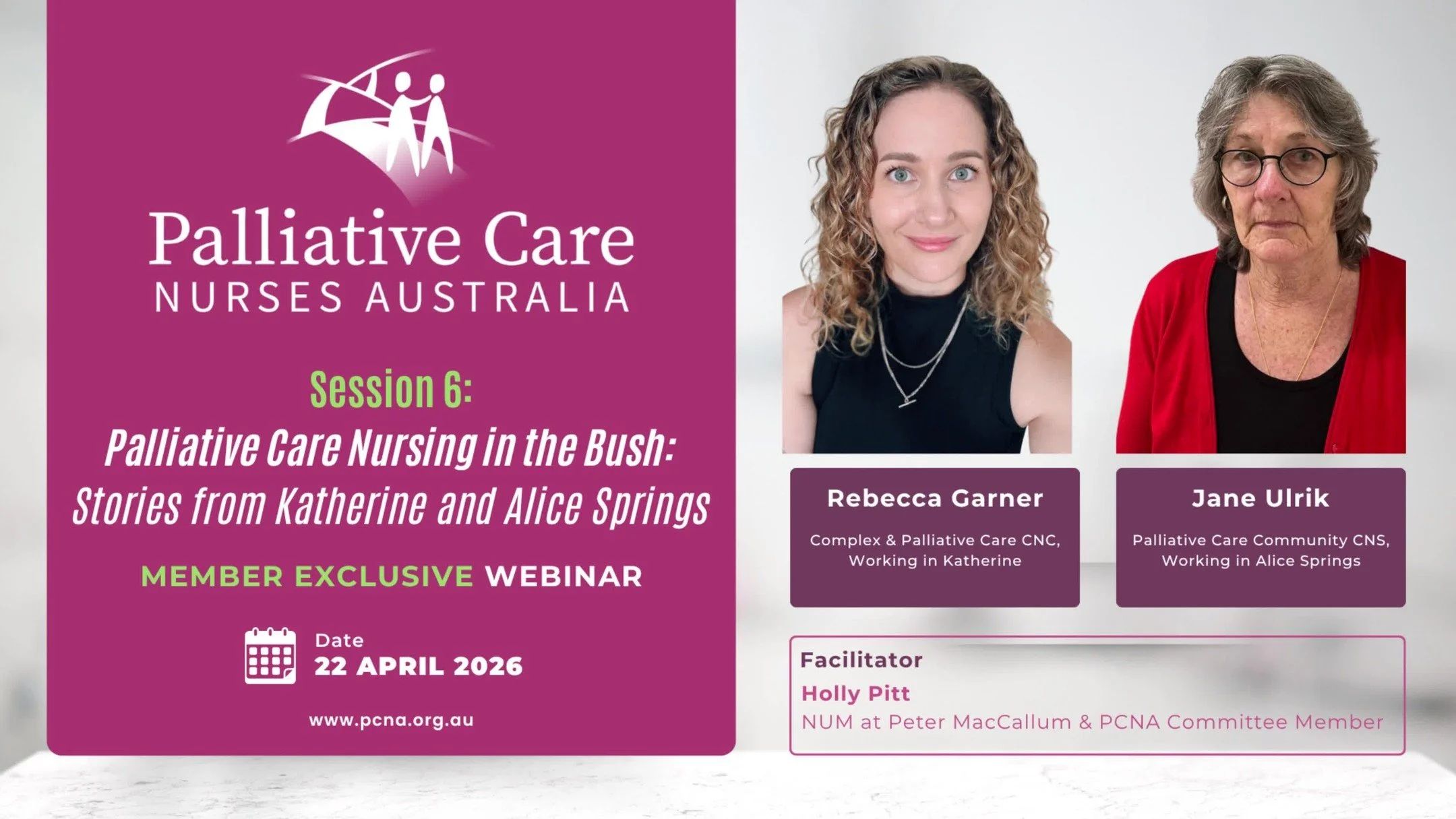 Palliative Care Nurses Australia (PCNA) is a member organisation for Australian nurses who are passionate about excellence in palliative care. We provide a unified voice for nurses who deliver, or have an enduring interest in, palliative care policy, practice, research and education. Our goal is to support our members to provide high quality, evidence-based palliative care services for patients at the end of life, and their families.